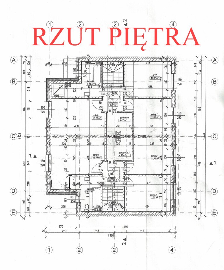 Powierzchnie pokoi: piętro 16m², 13 m², 11,5 m²